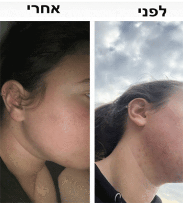 רציתי להגיד לך תודה ענקית על כך שבאמת אני מרגישה שהצלת אותי , כל כך התביישתי באיך שהפנים שלי נראו לפני חודשיים, והיום חודשיים אחרי אני במקום אחר לגמרי ואני מתגאה בפנים החדשות שלי,ומעבר לך אני שמחה שאני לא לוקחת את הרואקוטן והורסת את הבריאות שלי.